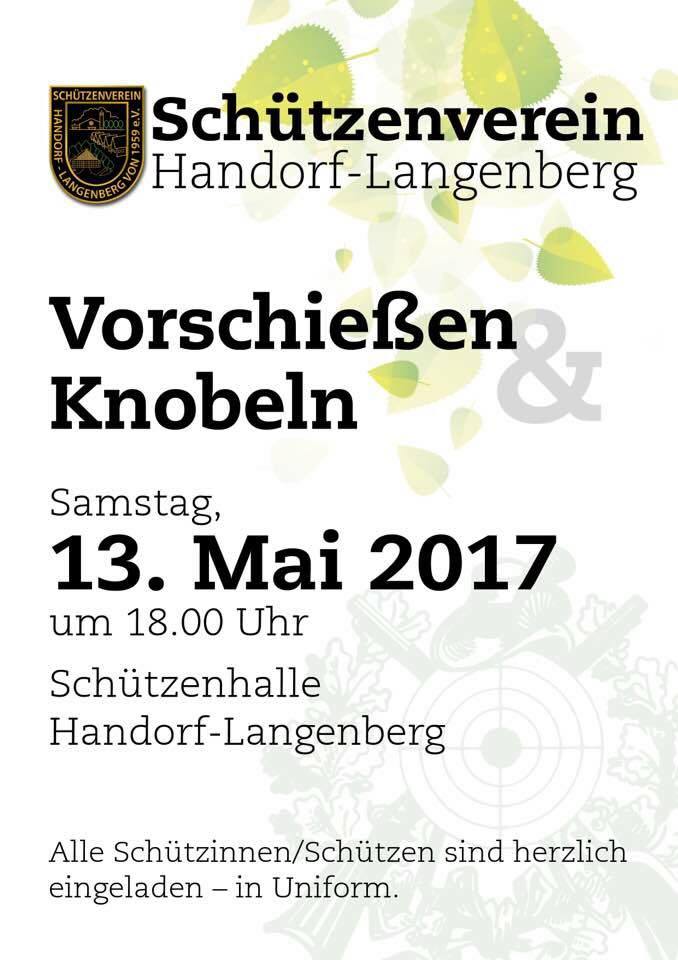 Dieses Wochenende (Samstag, 13.05.) findet das Vorschießen und Knobeln statt.